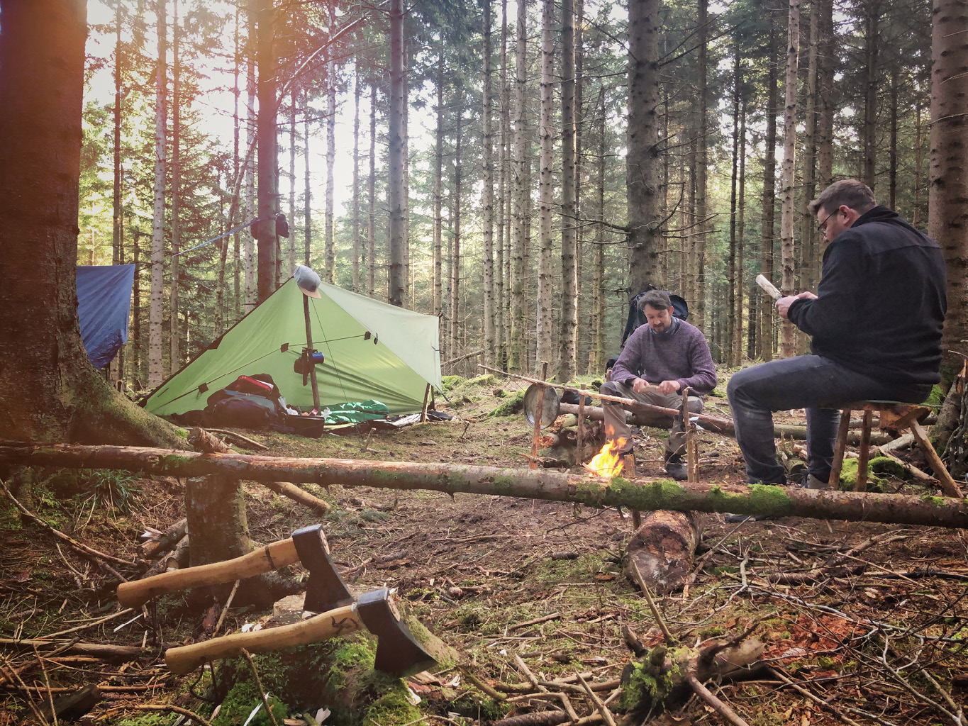 Es gibt ein Base-Camp wo immer ein Feuer brennt und sich alle Teams und Einzelpersonen zu gemeinsamen Mahlzeiten treffen.